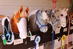Hobby horsing is a sport[1][2][3] with gymnastic elements which uses hobby horses, also known as stick horses.[4][5] Movement sequences similar to those in show jumping or dressage are partly simulated in courses, without real horses being used. The participants predominantly use self-made hobby horses.[6][7][8]