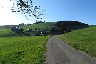 On the Hohwart is a schanze.[8] It was part of the baroque fortifications in the Black Forest. It was a square schanze in which there were log cabins. The schanze on the Hohwart was not linked by a bank-and-ditch system to its neighbouring schanzes, the Schanze auf dem Haldenbuck and the Ringelschanze on the Roßberg.[9]