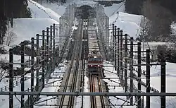 | Minimum radius | 4,000 m (2.5 mi; 13,000 ft) (Most) 6,500 m (4.0 mi; 21,300 ft) (Seikan Tunnel) | ||
