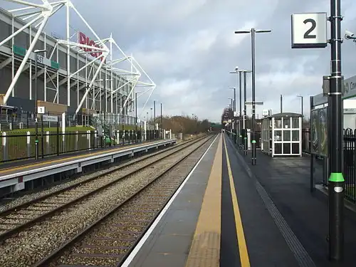 Holbrooks is close to the Coventry Building Society Arena (formally the Ricoh Arena), (which was designed to have limited parking to promote bus travel and walking) a parking permit scheme is in place. The stadium, and the adjacent Arena Park Shopping Centre are served by Coventry Arena railway station, opened in 2016. The Arena is currently home to Coventry City FC . It has hosted other sporting events including preliminary round football during the London 2012 Olympics (during which it was renamed the City of Coventry Stadium), and several music concerts. Notable acts who have played here include Bon Jovi 2008, Take That June 2009, and reformed Coventry bands The Specials and also The Enemy. Manchester band Oasis played the Ricoh during July 2009 and American act Pink, artist Alecia Moore played during 2010. The venue also includes a casino and large exhibition and conference centre.