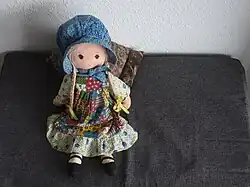 Beginning in 1989[2]: 128 and into the 1990s, Holly Hobbie dolls were produced by Tomy.[1]: 104 Knickerbocker Toys also began producing dolls, but these were vinyl doll heads with soft bodies, unlike the original cloth dolls (rag dolls).[2]: 128–29