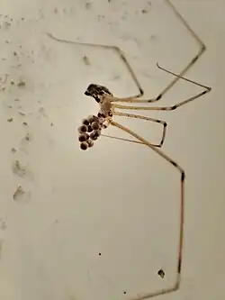 - ^ a b c d Skow, Christa D.; Jakob, Elizabeth M. (August 2003). "Effects of Maternal Body Size on Clutch Size and Egg Weight in a Pholcid Spider (Holocnemus Pluchei)". Journal of Arachnology. 31 (2): 305–308. doi:10.1636/01-85. S2CID 83878435.