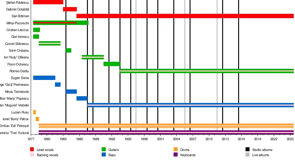 - Mihai Pocorschi – guitar, lead vocals, backing vocals (1977–1986)