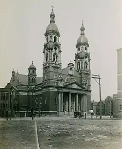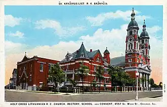 Holy Cross Church (Chicago), referred to in Lithuanian as Šv. Kryžiaus Bažnyčia, is a historic church of the Roman Catholic Archdiocese of Chicago located on West 46th Street in Chicago, Illinois. Built by Lithuanian immigrants, it bears a striking resemblance to many of Chicago's so-called "Polish Cathedrals" by virtue of the common heritage Poles and Lithuanians shared during the Polish–Lithuanian Commonwealth and reflected in their architectural tastes. Holy Cross merged with the nearby Immaculate Heart of Mary Church on 45th and Ashland to make one parish, Holy Cross - Immaculate Heart of Mary.[1] In 2021, the parish was further united with two nearby churches.[2]