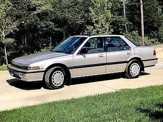 Since its initiation, Honda has offered several different car body styles and versions of the Accord, and often vehicles marketed under the Accord nameplate concurrently in different regions differ quite substantially. It debuted in 1976, as a compact hatchback, though this style only lasted through 1989, as the lineup was expanded to include a sedan, coupe, and wagon. By the sixth-generation Accord at the end of the 1990s, it evolved into an intermediate vehicle, with one basic platform but with different bodies and proportions to increase its competitiveness against its rivals in different international markets. For the eighth-generation Accord released for the North American market in 2007, Honda had again chosen to move the model further upscale and increase its size.[1] This pushed the Accord sedan from the upper limit of what the U.S. Environmental Protection Agency (EPA) defines as a mid-size car to just above the lower limit of a full-size car,[2] with the coupe still rated as a mid-size car. In 2012, the ninth-generation Accord sedan, with smaller exterior dimensions, was once again classified as a mid-size car at 119 cubic feet (3.4 m3), falling just shy of the "Large Car" classification. However, the tenth-generation Accord sedan, with similar exterior dimensions, returned to full-size car status with its combined interior space of 123 cubic feet (3.5 m3); the coupe was discontinued in 2017.