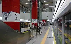 Hongling station (simplified Chinese: 红岭站; traditional Chinese: 紅嶺站; pinyin: Hónglǐng Zhàn; Jyutping: jung4 ling5 zaam6) is a station on Line 3 and Line 9 of the Shenzhen Metro. It opened on 28 June 2011 and Line 9 platforms were added on 28 October 2016. Line 3 station is located on Hongli Road, Futian District. Line 9 station is located on Hongling Middle Road, the boundary between Luohu and Futian.[1]
