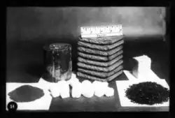 Sledging biscuits are an essential component of sledging rations. These hard, long-life biscuits are made of flour, salt, butter, water and baking soda. Sledging biscuits are popular on expeditions in Antarctica because they are high in energy.[4][5][6] Plasmon biscuits were taken in large quantities by Ernest Shackleton in his Antarctic Expedition of 1902, and were also favored by Douglas Mawson. Plasmon itself was a powdered milk extract used as a fortifying agent that was utilized in early sledging rations.[3]