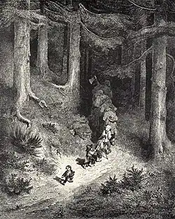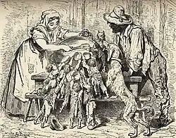 Gustave Doré contributed 11 illustrations to an 1862 edition of Perrault's book, Les Contes de Perrault.[9]
