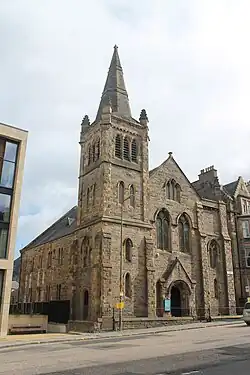 The congregation also addressed its parish's growing population by contributing £1,500 towards the construction of a new church in St Leonard's.[14][15] The foundation stone was laid on 1 June 1878 by the Earl of Rosslyn, Lord High Commissioner to the General Assembly of the Church of Scotland in the presence of John Tulloch, Moderator of the General Assembly of the Church of Scotland.[16] St Leonard's Church opened on 6 April 1879. The building was designed by John Lessels and, at its opening, had space for 1,000 worshippers as well as an organ by Forster & Andrews.[17] On 21 November 1879, the church was gutted by fire but was soon rebuilt, reopening on 21 May 1880 and becoming a charge quoad sacra in 1883 with a parish detached from St Cuthbert's.[18][19][20]