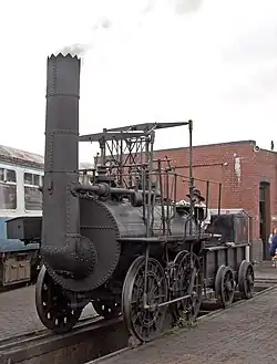 Locomotion No. 1 1975 Replica S&DR 0-4-0 N/A Locomotion No. 1 was built by George Stephenson for the world's first public steam-worked passenger railway, the Stockton and Darlington Railway. It was responsible for hauling the first train on the line on 27 September 1825. The original was displayed in the museum between 1975 and 2021. It was moved to Shildon in that year.[7] A 1975-built replica, previously based at Beamish Museum, has now replaced it in the museum and it is intended for this replica to be restored to working order in time for the 200th anniversary of the S&DR in 2025.[8][9]