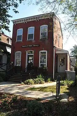 - ^ a b Johnson, Kelley. "Hopewell library looks for a more compliant work space as it celebrates 100th birthday", The Times, March 18, 2014, updated March 29, 2019. Accessed November 27, 2019. "The current red building was erected in 1890 and served as a home for the Hopewell National Bank. The library was founded inside an old harness shop on March 14, 1914, moved into a museum building in the 1920s and later moved to the current location in the old bank building."
