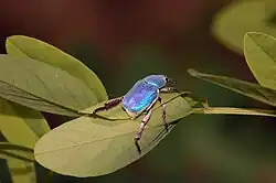 Hoplia coerulea is a species of scarabaeid beetle belonging to the subfamily Melolonthinae. This beetle can be found in Southwest Europe, including France, Spain and Switzerland. Males are bright blue, females are brownish.