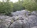 The boulders range from 400 to 600 million years old with a section that scientists say may possibly date back over a billion years old.[1] The area is home to field mice, foxes, badgers, black bear, coyotes, raccoons, deer, groundhogs, squirrels, as well as an assortment of hawks, owls, turkey vultures, and the rare red-cockaded woodpecker and red pileated woodpeckers.
