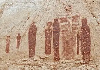 Horseshoe Canyon, formerly known as Barrier Canyon, is in a remote area west of the Green River and north of the Canyonlands National Park Maze District in Utah, United States. It is known for its collection of Barrier Canyon Style (BCS) rock art, including both pictographs and petroglyphs, which was first recognized as a unique style here. A portion of Horseshoe Canyon containing The Great Gallery is part of a detached unit of Canyonlands National Park. The Horseshoe Canyon Unit was added to the park in 1971 in an attempt to preserve and protect the rock art found along much of its length.[1][2][3]