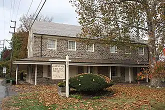 Horsham Friends Meeting was founded in 1716. Land in the area was originally deeded from William Penn to Samuel Carpenter. Hannah Carpenter deeded the surrounding fifty acres to the meeting in 1718. The current meeting house, which was built in 1803, is situated the third on the site.[3]