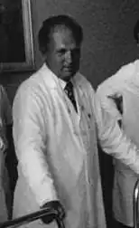 In 1974, he joined East Germany's ruling Socialist Unity Party (Sozialistische Einheitspartei Deutschlands / SED).[2] Between 1984 and 1989 he served as a member of the party's district leadership team ("Bezirksleitung") in Rostock.[2] He was a chairman of the Scientific Advisory Committee to the East German Health Ministry. Reports also emerged later that during the 1980s he had passed personal information on colleagues to the East German Ministry for State Security (Stasi).[9] Research into the archives indicated that from 1968 he had been identified in Stasi files under the code name "Informal Collaborator Ludwig" ("IM Ludwig").[9] His evident travel privileges reflected his international eminence, but there are indications that his cultivation of the political establishment was also helpful in this regard. [10] However, the Stasi files also disclose that by the 1980s he was regarded as unreliable by his handlers because he had failed to provide adequate disclosure of private contacts made during his trips abroad, and after 1987 his career as an informant was officially deemed to be over.[9]