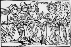 |  Hortensia making her case to the Roman authorities on a colored woodcut from the 15th-century German translation of Giovanni Boccaccio's Concerning Famous Women | |