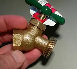 The US standard was defined by NFPA 1963, "Standard for Fire Hose Connections",[2] then later by ANSI-ASME B1.20.7,[3] which specifies 1+1⁄16 inches (27 mm) diameter straight (non-tapered) thread with a pitch of 11.5 threads per inch (TPI). The female thread is abbreviated FHT (for "female hose thread"), and the male part is abbreviated MHT (for "male hose thread"). This fitting is used with 1⁄2-inch, 5⁄8-inch, and 3⁄4-inch hoses.[4][5]