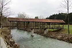 • To the east of the settlement there is a wooden bridge dating to the mid-19th century across the Poljane Sora River.[18]