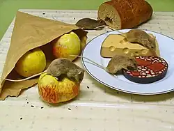 House mice primarily feed on plant matter, but are omnivorous.[26] They eat their own faeces to acquire nutrients produced by bacteria in their intestines.[27] House mice, like most other rodents, do not vomit.[28]