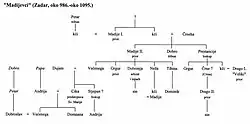 • Madius or Madije, the first known member, prior of Zadar and the proconsul of Dalmatia, rebuilt the monastery of St. Krševan in 986.[2] The only prior of Zadar before the Madi was Andrija, the founder of the St. Krševan Monastery, who died in 918.[3][4][5]