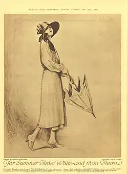 - ^ Madame Hagué (February 1923). "Clothes the Whisper of Spring; Notes on Advance Fashions and the New Silk Fabrics". Arts & Decoration. 18 (4): 44.