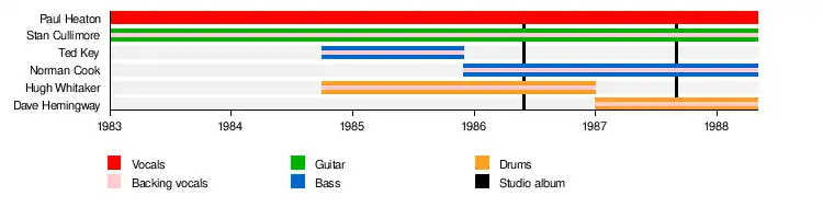 - Paul Heaton – vocals, harmonica, guitar, trombone (1983–1988)