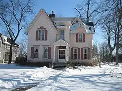 The Charles A Bishop House, also known as the William Phelps House, is in 500 block of South Main Street in Sycamore.The house started its existence in 1863 attached to the J.H. Rogers/Bettis House, which currently stands next door to the Bishop House. In 1887 the Bishop House was moved, by mule, from its original location.[4] That property became the site for the c. 1890 J.H. Rogers House. When the Bishop House was moved the Rogers-Bettis House was split off from it and planted next door.[4] The property the house stands on today was part of the original 80 acres (320,000 m2) purchased by Ellzey P. Young from the United States government by an act of Congress.[4]