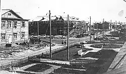 One of the first new housing constructions to embody the idea of "collective houses," albeit in a modest interpretation, was the temporary workers' barrack-style housing of 1919–1920. These had extensive shared facilities, including club-dining halls, dining-reading rooms, cloakrooms with drying areas, and communal washrooms.[38]