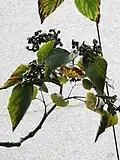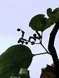 In Thailand Hovenia dulcis grows at roughly the same rate as eucalyptus, reaching six metres in height within three years.[8] One major asset is that the growth form of the tree allows other species to regenerate nearby. Furthermore, the tree is known to attract several varieties both of birds and of mammals which feed on the seeds and fruit.[10] As well as promoting faunal diversity, this process assists in improving soil fertility through humification.[8]