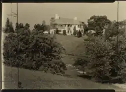 By the early 20th century, Locust had become a fashionable summer colony for the upper-class.[3] One of these families was the family of Joseph Huber, a German immigrant who founded the J.M. Huber Corporation, which originally sold pigments. The Hubers rented the Brown family farm in 1904, and purchased the property outright in 1915.[4] Joseph's son, Hans Huber and his wife Catherine Huber decided to build their home on the property as well, building the H.W. Huber house, a Alpine-style house in 1927 designed by architects William Frenaye and Edwin Howard.[5] The Huber family would spend summers at the house, farming the land and raising horses, cows and chickens.[4]