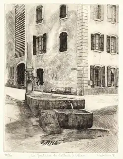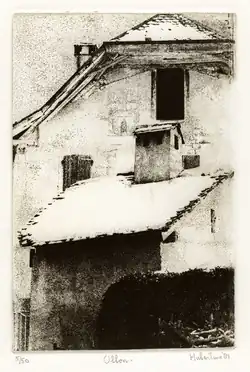 Exhibits in Florence (Italy) took place in 1969, 1970 and 1972 and in Switzerland from 1973 to 2008, after she settled in the Commune of Ollon. She exhibited in Aigle, Lausanne, Montreux, Fribourg, Sion, Porrentruy and in Aubonne[13] near Lausanne. In 1994 Heijermans showed hundreds of oil paintings, watercolors and etchings in Singapore.[14] Other exhibits were held in The Netherlands, in the Scheveningen (1964), Delft (1970), Amsterdam (1982) and Leiden (1983). The Musée Jenisch in Vevey[15] now keeps 50 etchings, lithos and héliogravures, since recent work was added in 2007. The museum for photography Musée de l'Élysée in Lausanne conserves 45 photo-etchings since Charles-Henri Favrod in 1993 made a choice of her héliogravures as dust grain photogravures are called in French. The Dutch Museum van Bommel van Dam keeps 23 etchings and lithographies printed by herself on her own manually driven press since 1978, accepted after a vote of the Municipality of the town of Venlo. Her work can also be found at the Dominican University, Illinois. In July 2012, the Musée historique du Chablais in the Château de la Porte du Scex added 2 oilpaintings to their collection of etchings, lithos, héliogravures and woodcuts they already conserved, to the 80 artistproofs and handprinted originals executed by Heijermans. From 26 April until 28 October the Musée historique du Chablais in Vouvry organized 2 exhibits showing the history of the region, where the artist lives and works. For that reason her etchings, watercolors and oilpaintings, depicting sites of Les Ormonts region or the plain where the Rhône river joins the Lake Geneva, were on display and accompanied a show of the history of health resorts and hotels.[16]
