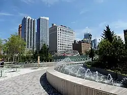 The park and boulevard was developed concurrently with the New York City Subway's 7 Subway Extension to 34th Street. The park contains the two entrances to the 34th Street station.[6] The first entrance is located between 33rd and 34th streets,[6] and a second entrance is between 34th and 35th streets.[7]