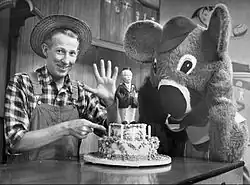 Brannum as Mr. Green Jeans with Dancing Bear (Cosmo Allegretti) in 1960. | |