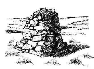 Near the summit there is a column of cut stones, known as "Lady's Pillar", and the inscription AP1664 can just be made out – for Anne Pembroke, Lady Anne Clifford's married name. The pillar was erected in 1664 to commemorate Sir Hugh de Morville, Lady Anne's predecessor as Lord of the Manor of Mallerstang. (Sir Hugh was one of the four knights responsible for the murder of Archbishop St.Thomas Becket in Canterbury Cathedral in 1170).