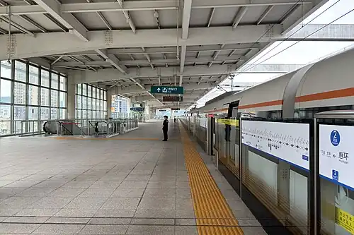Huihuan railway station (simplified Chinese: 惠环站; traditional Chinese: 惠環站; pinyin: Huìhuán Zhàn; Jyutping: Wai6waan4 Zaam6) is a railway station in Huicheng District, Huizhou, Guangdong, China. It opened on 30 March 2016.[1] It is located above Zhongkai Boulevard.[2]