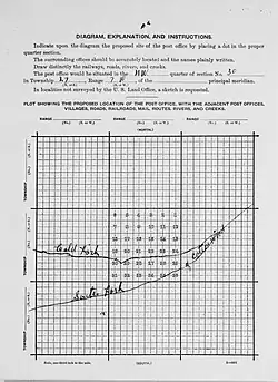 Hunters was a post office to the north of Cold Fork,[15] which also had a nearby school, Hunter School, approximately 1.5 miles (2.4 km) north of Cold Fork on what was in 1997 still named Hunter Road.[15][16] There was a school at Cold Fork itself in 1888 and 1891 but in 1892 Cold Fork schools were declared "lapsed" and merged with the Hunter schools.[17][18][19] A post office was established at Cold Fork in 1915, 15 miles (24 km) southwest of Hunters, and remained in operation until 1920 when it moved to Hunters.[3] Its postmaster in 1918 was Laura French Heitman.[20] After the post office closed, the building became a residence.[6]
