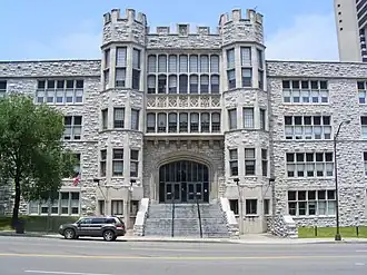 In 1875 Fogg High School was built adjacent to Hume School at the corner of Broad and Eighth and absorbed its high school students. Around 1910 both schools were razed and replaced by Hume-Fogg High School, a Gothic Revival building, which opened in 1912.[6] The building consists of five floors including a basement, which has several tunnels leading to various locations in downtown Nashville. However, they are currently boarded off and inaccessible. In 1942 Hume-Fogg was recast as a technical and vocational school.