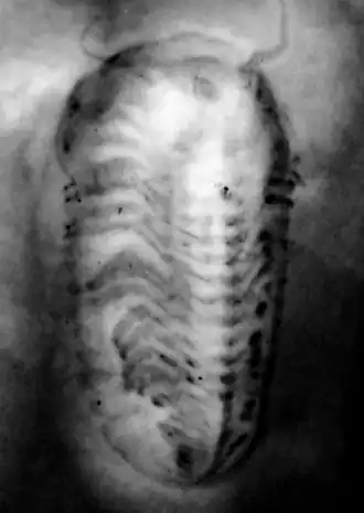 X-ray photograph of fossil of Chotecops ferdianandi, a common trilobite from Hunsrück Slate