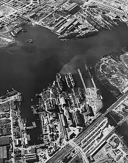 Hurley Marine Shipyard of Hurley Marine Works also site of Naval Reserve Armory, Oakland and the Naval Industrial Reserve Repair Facility, Oakland was a shipyard in Oakland, California. The Hurley Marine Shipyard opened in 1940 on property (the former Hanlon Dry Dock and Shipbuilding yard) that previously had belonged to the General Engineering & Drydock Company,[1] in 1951 the yard was operated by Crowley Maritime Corporation. In 1964 the site was operated by Pacific Dry Dock and Repair Company. The shipyard closed in 1992, today most of the shipyard is vacant land with part of the land now Leal Seal Boat Works owned by Leal Charonnat, of Leal Charonnat - Architect & Engineering. A small boatyard operated at the site from 1935 to 1940. The shipyard was located at 321 Embarcadero Oakland on the San Francisco Bay, Inner Oakland Harbor. Crowley Maritime Corporation was the parent corporation of Pacific Dry Dock, which used the shipyard to repair its fleet of tugboats and other ships. Pacific Dry Dock also operated a shipyard across from Coast Guard Island till 1991 at 1414 Embarcadero Oakland.[2][3][4][5]