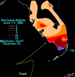 - ^ David Roth (2006). "Rainfall summary for Hurricane Alberto (1982)". Hydrometeorological Prediction Center. Retrieved 2007-02-10.