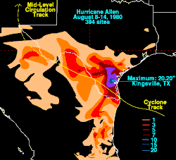 - ^ David M. Roth (January 15, 2007). "Storm Total Rainfall From Hurricane Allen (1980)". Hydrometeorological Prediction Center. Retrieved February 16, 2010.