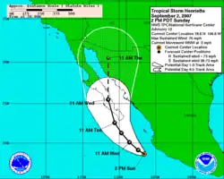- ^ a b Staff writer (2007). "Alerta en Guerrero por tormenta tropical Henriette" (in Spanish). El Universal. Archived from the original on September 6, 2007. Retrieved March 21, 2008.