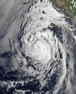 In the Mexican states of Baja California and Baja California Sur, the storm brought high clouds over the region for several days.[24] In Ensenada, minor flooding was recorded.[25] Along the peninsula, waves up to 8 ft (2.4 m) were measured.[26]