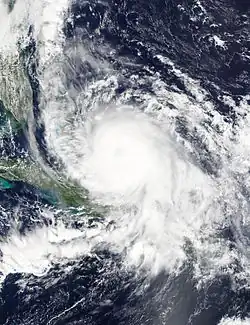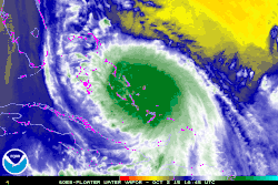 ![]() Hurricane Joaquin at peak intensity to the northeast of The Bahamas on October 3 | |
