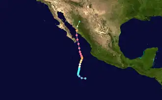 - ^ "Repore: Ciclones tropicales Plan de Accion ante el cambio climatico del e stado de Baja California Sur" (PDF). Universidad Autónoma de Baja California Sur. p. 18. Retrieved June 11, 2013.