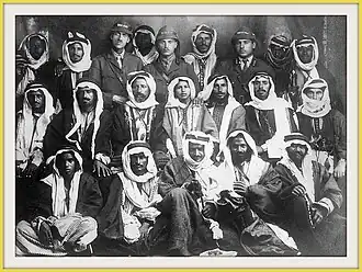 ![]() Sheikh Auda Abu Tayi and men of his tribe with a group of officers of the Arab Army in 1916. | |