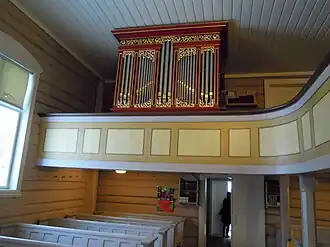 The earliest existing historical records of the church date back to the year 1398, but the church was not built that year. The first church at Hvarnes was a wooden stave church that was likely built around the year 1200. In 1398, the stave church was dedicated to St. Olav. By the late 1600s, the church was said to be showing signs of rot and decay. In 1671, the church building was purchased by the Countship of Larvik, but the building was not improved. Around 1700, it was decided to tear down the old church and rebuild it on the same site. The new church was completed in 1705. The new long church was built of log construction and it has a rectangular nave and a rectangular chancel. In 1708, the church received exterior paneled siding. It also got more beams and iron bolts to improve its structural integrity. It is uncertain if the wooden tower was part of the original construction, but by 1713, there was a wooden tower at the main entrance on the west end of the nave. In 1849, a small sacristy on the south side of the chancel was built (and it was enlarged in 1896). The church was painted maroon on the outside until 1872, but was then painted white. At the same time, the interior was repainted. Then there were further interior changes in 1928–29 before a major restoration in 1977 which saw the interior colors changed back to the original. Inside, the church has a second floor seating gallery along the west wall and north wall of the nave. The chancel opening is round-arched, and the chancel and nave both have a flat ceiling, with the chancel ceiling being significantly lower than that of the nave.[3][4]