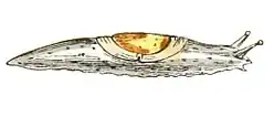 "Animal limaciform, swollen at centre, blunt before, and tapering behind; tentacles simple; mantle large, central, concealing all but a small opening; an internal shell-plate; no longitudinal furrows above the margin of the foot, and no caudal mucous pit; no distinct locomotive disk; external respiratory and anal orifices on the central right margin of the mantle; orifice of combined genital system on right side of head, halfway between eye-peduncle and mantle."