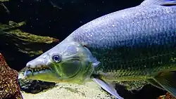 Hydrocynus is a genus of characin fish in the family Alestidae commonly called "tigerfish," native to Africa. The genus name is derived from Ancient Greek ὕδωρ ("water"[2]) + κύων ("dog"[2]). The genus contains five species,[3] all commonly known as "African tigerfish" for their fierce predatory behaviour and other characteristics that make them excellent game fish.[4] Hydrocynus are normally piscivorous,[5] but H. vittatus is proven to prey on birds in flight.[6]